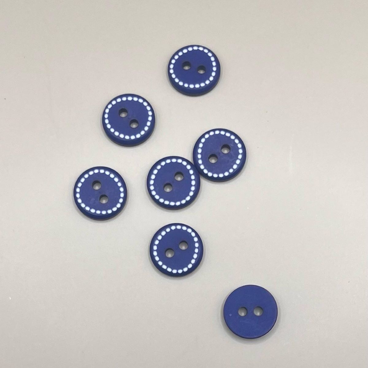 Beautiful blue button with indented white dots. Made in Europe and tested to EU standards. Size 12mm.