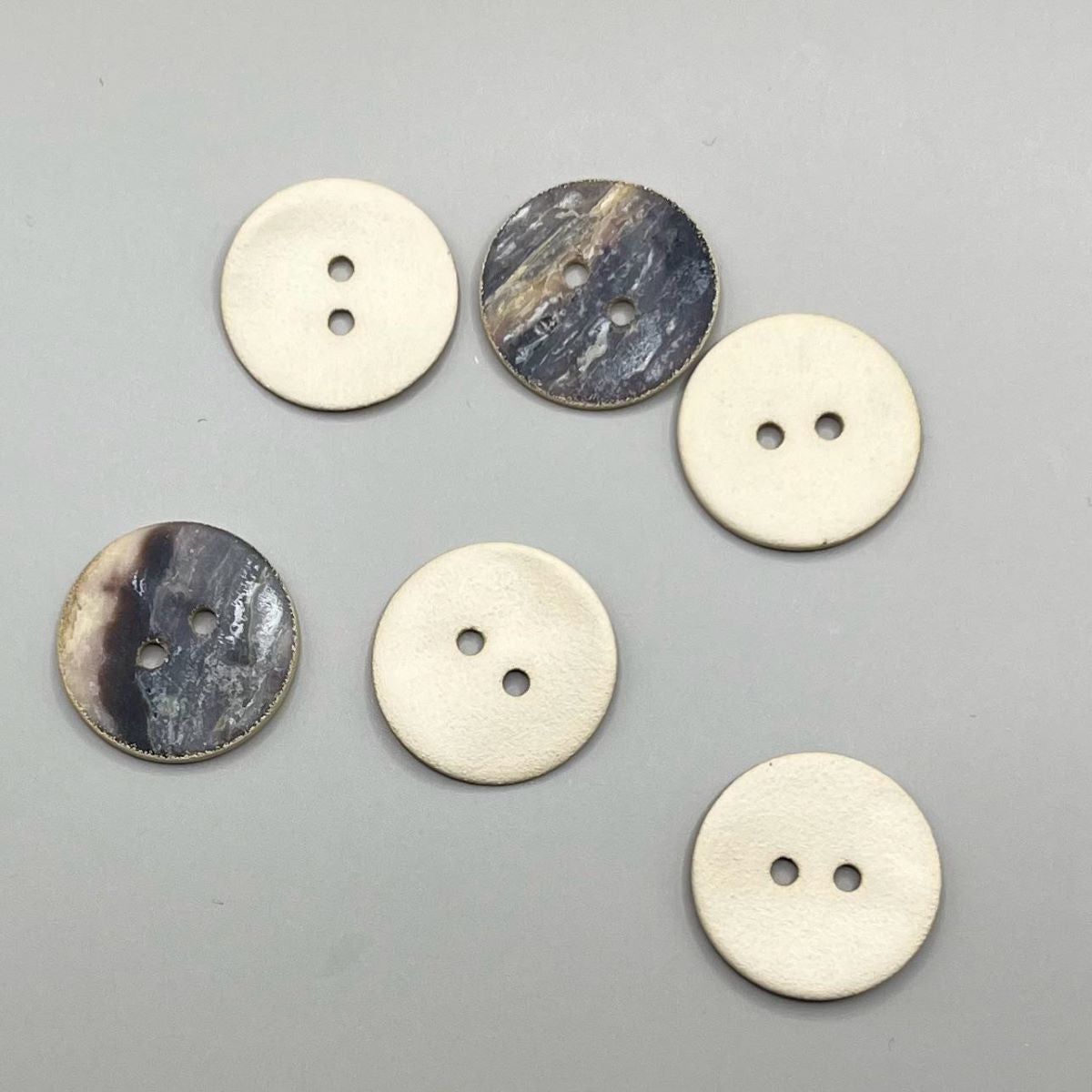Shell with matt opaque cream colour to one side. Made in Europe and tested to EU standards. Size 18mm.