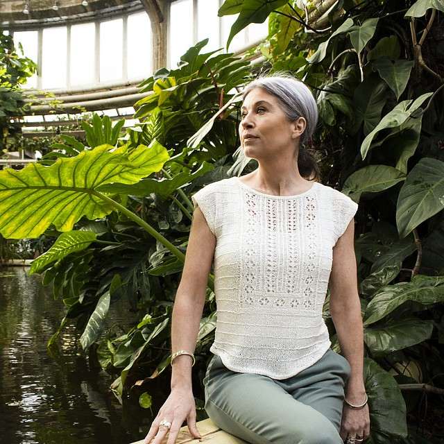 Joni is the perfect summer knit. There’s enough soothing stockinette to let your mind wander, but the lovely details (that lace panel!, the rounded hem!) ensure a fun and engaging knitting journey.